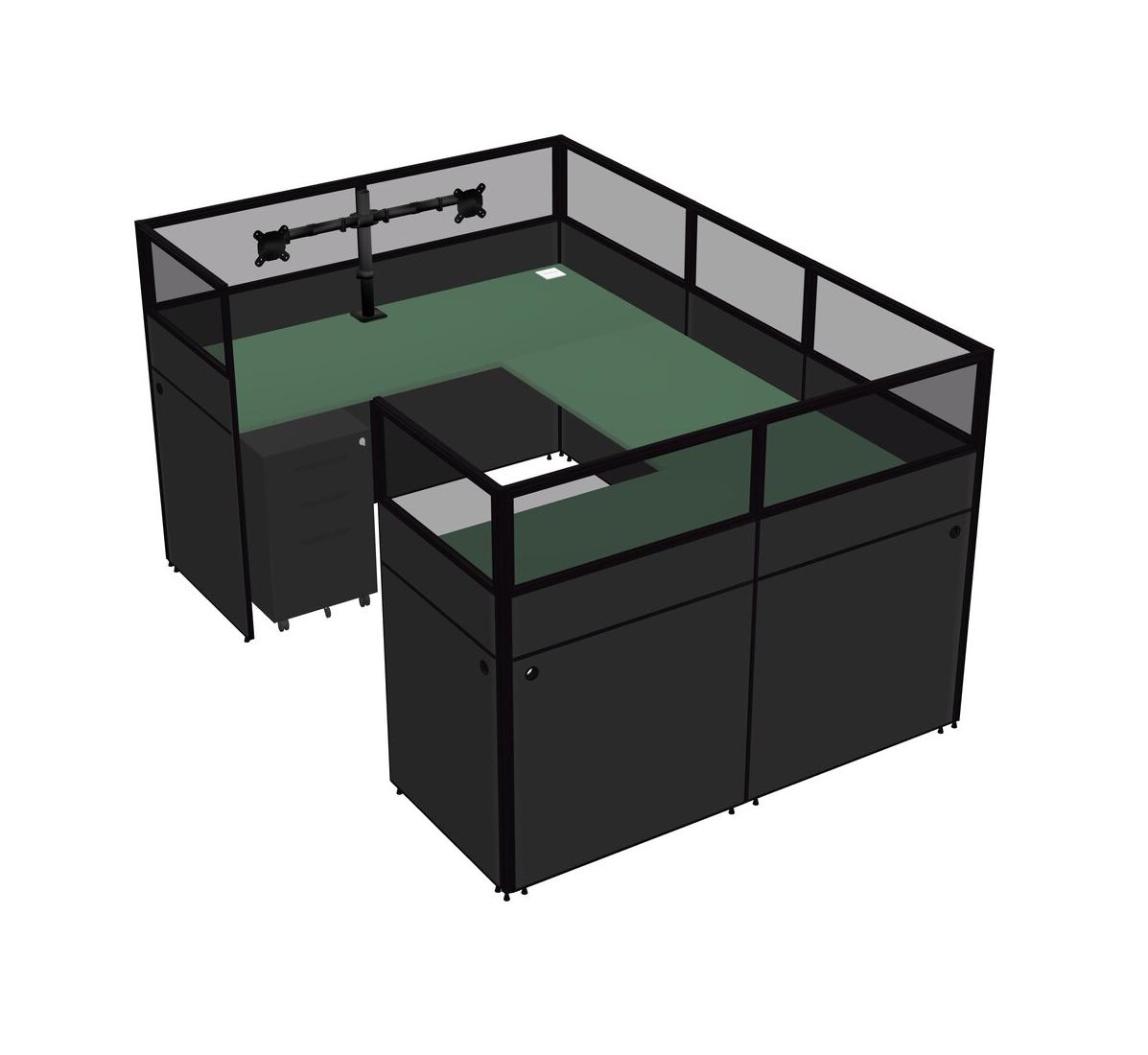 Green U-shaped Panel System For 1 Person + Monitor Arm (double Arms) + Metal Mobile Drawers For 1 User(s)