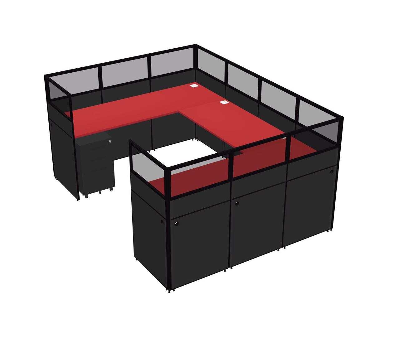 Prism Red U-shaped Panel System For 1 Person + Metal Mobile Drawers For 1 User(s)