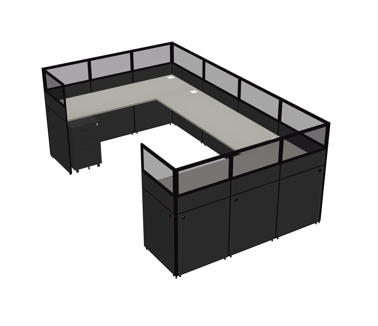 Grey Shadows U-shaped Panel System For 1 Person + Metal Mobile Drawers For 1 User(s)
