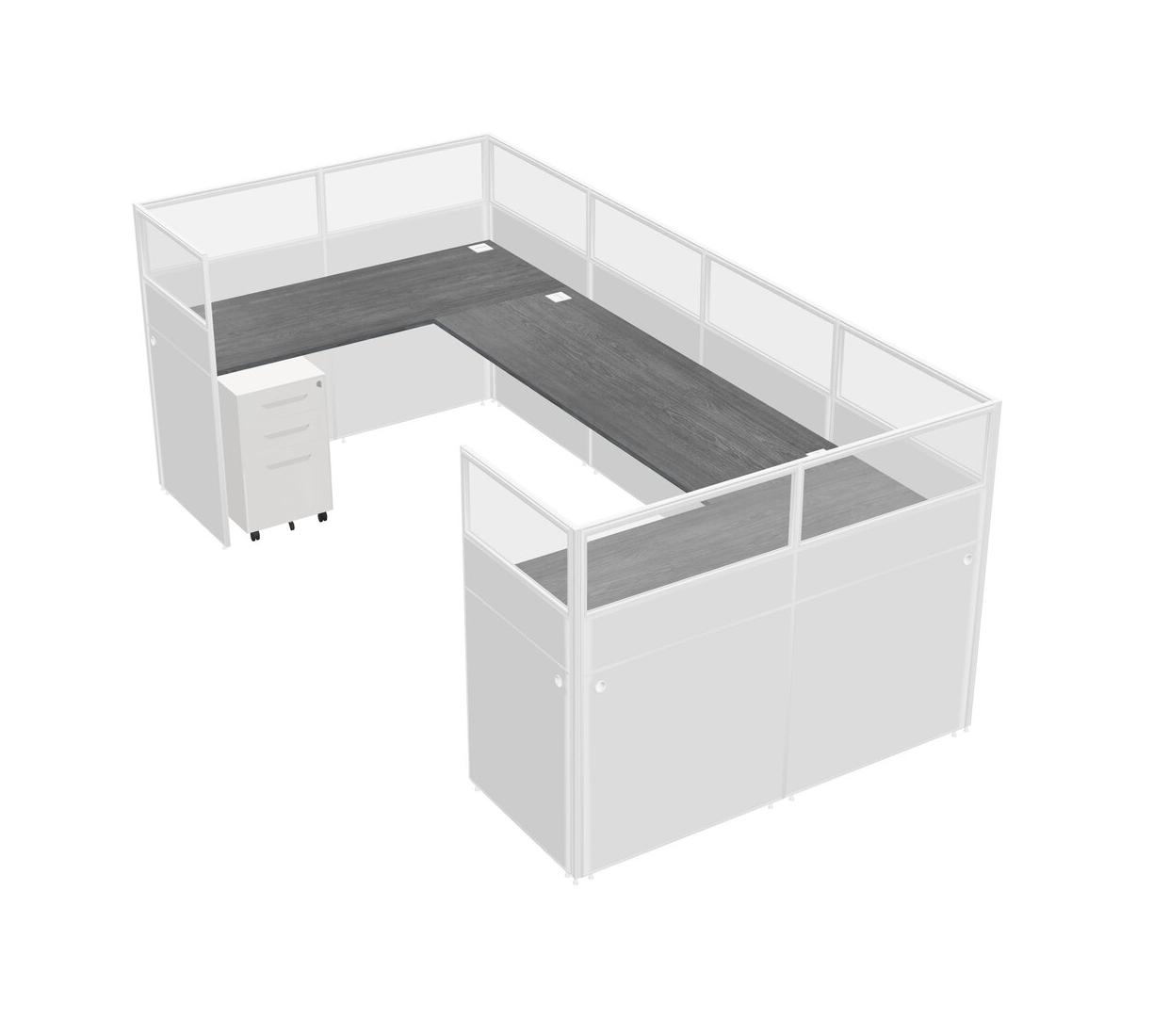 Grey U-shaped Panel System For 1 Person + Metal Mobile Drawers For 1 User(s)