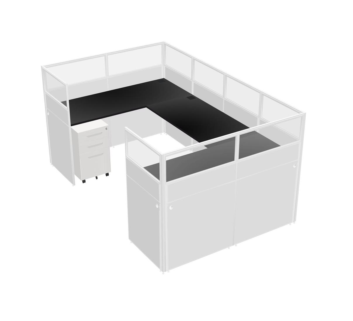 Black U-shaped Panel System For 1 Person + Metal Mobile Drawers For 1 User(s)