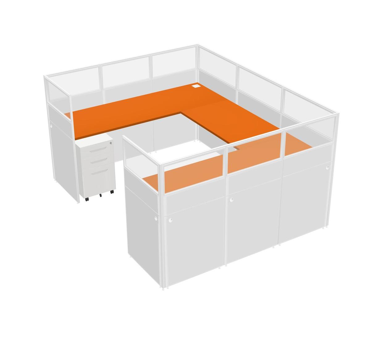 Orange U-shaped Panel System For 1 Person + Metal Mobile Drawers For 1 User(s)