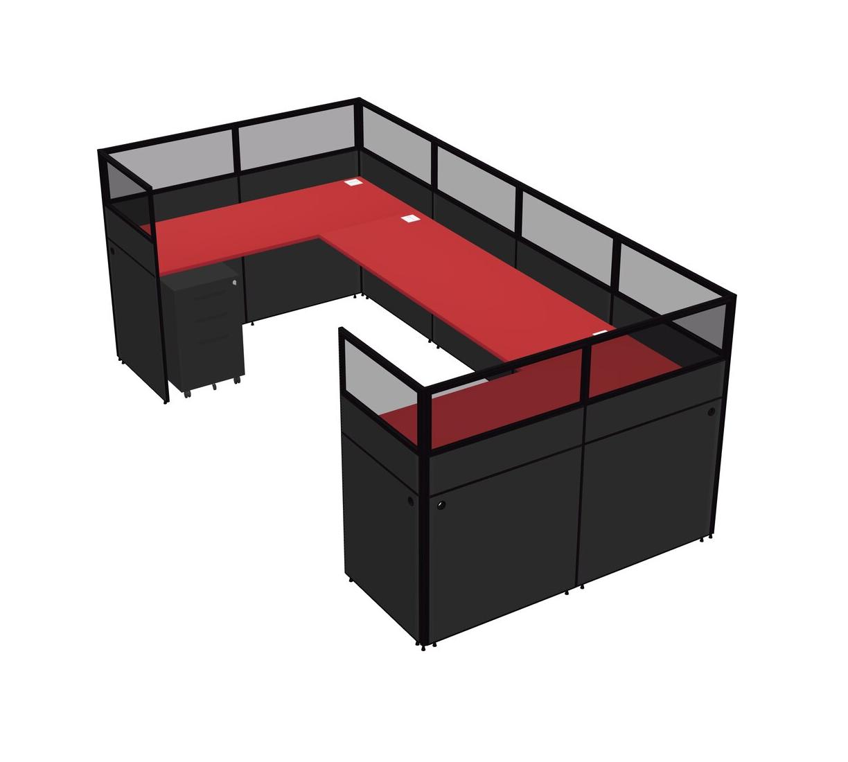 Prism Red U-shaped Panel System For 1 Person + Metal Mobile Drawers For 1 User(s)