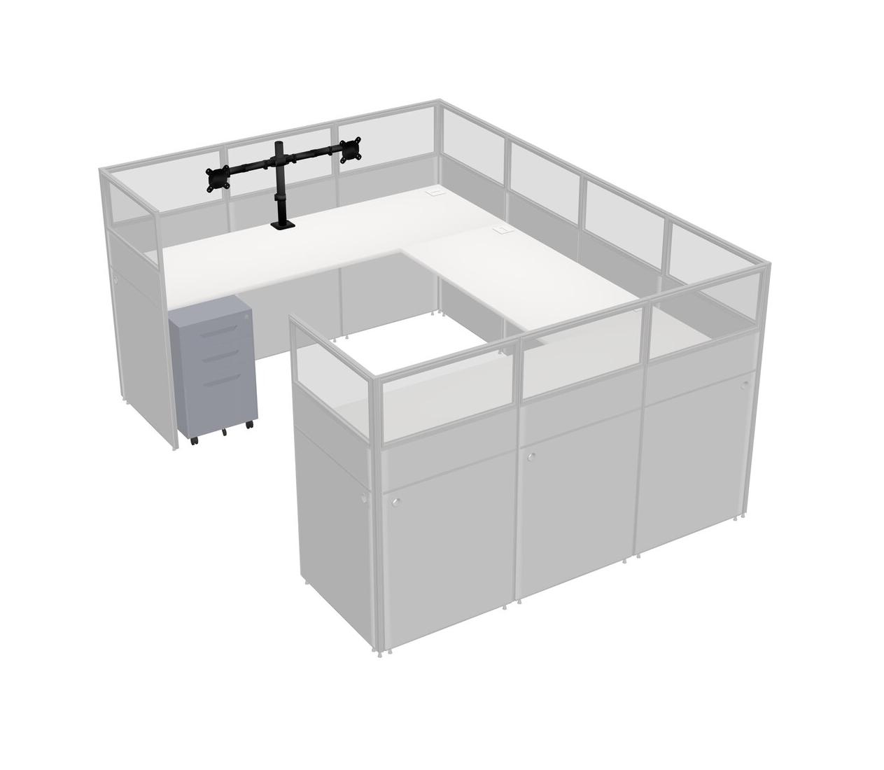 White U-shaped Panel System For 1 Person + Monitor Arm (double Arms) + Metal Mobile Drawers For 1 User(s)