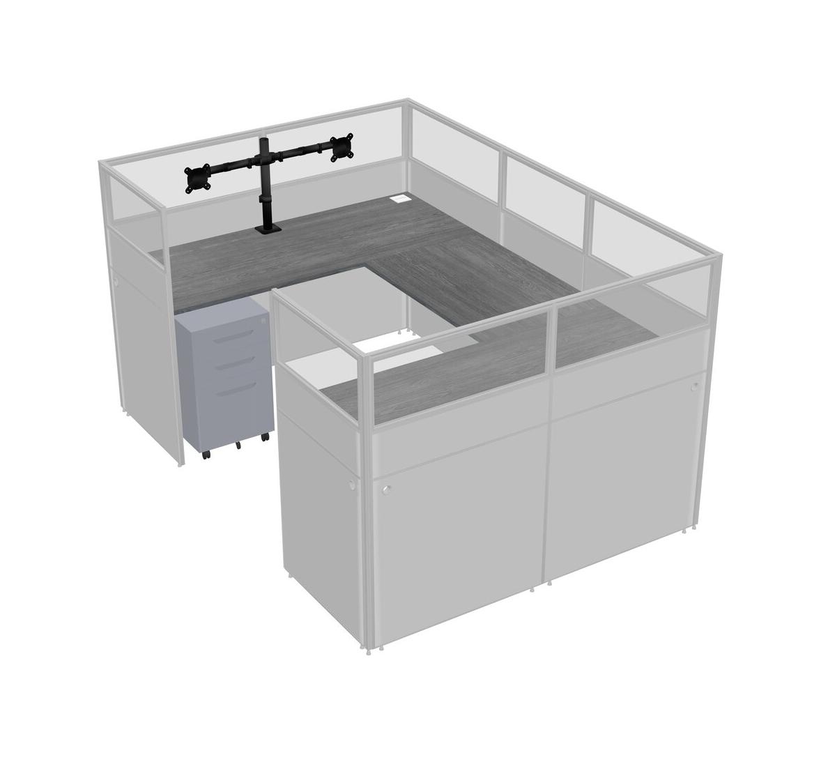 Grey U-shaped Panel System For 1 Person + Monitor Arm (double Arms) + Metal Mobile Drawers For 1 User(s)