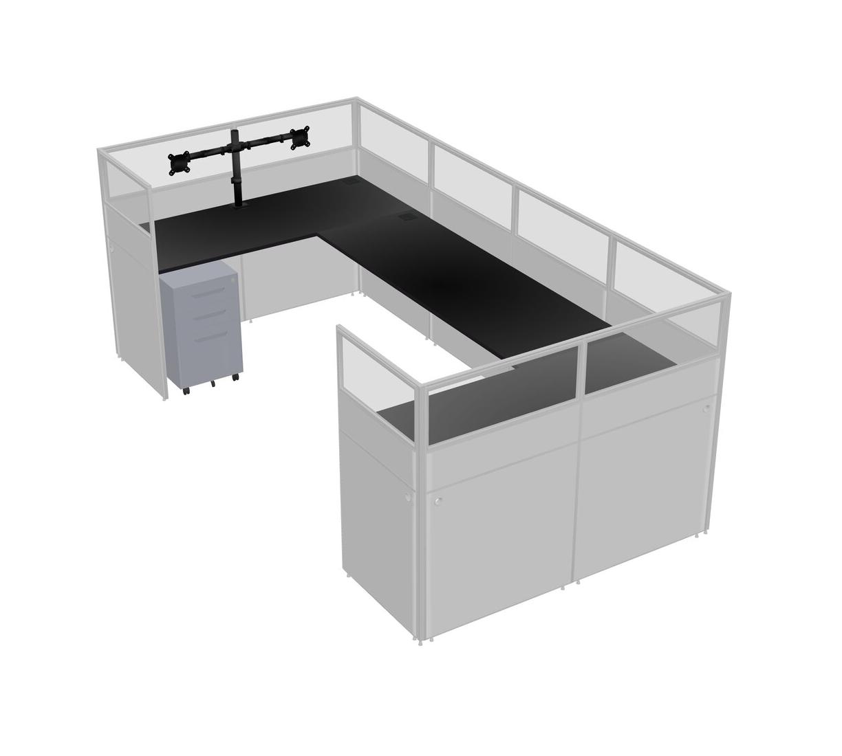 Black U-shaped Panel System For 1 Person + Monitor Arm (double Arms) + Metal Mobile Drawers For 1 User(s)