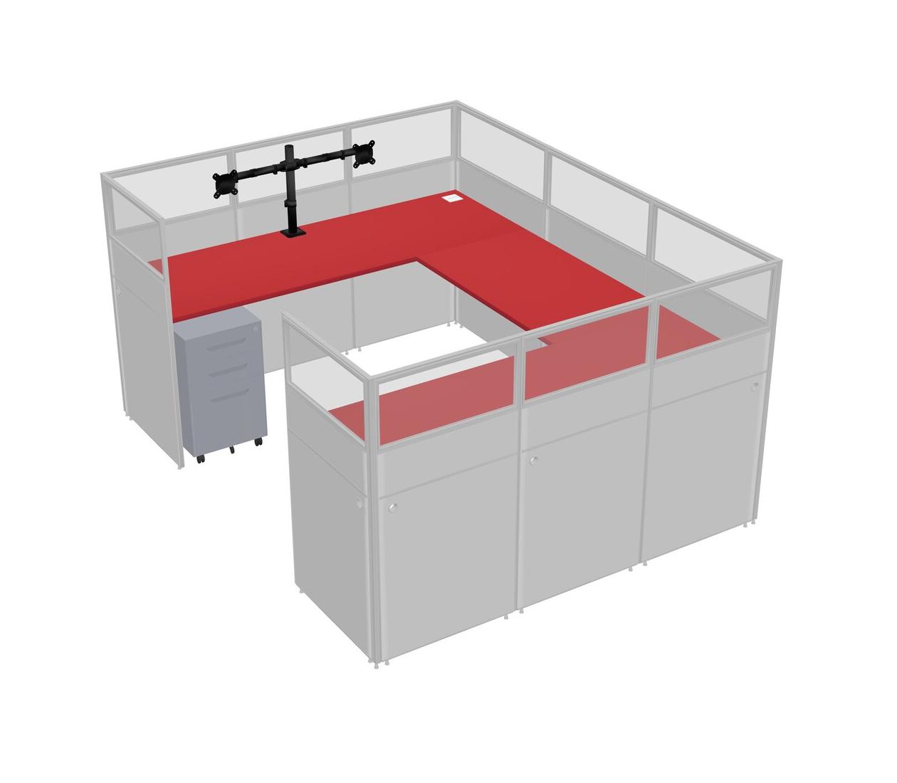 Prism Red U-shaped Panel System For 1 Person + Monitor Arm (double Arms) + Metal Mobile Drawers For 1 User(s)