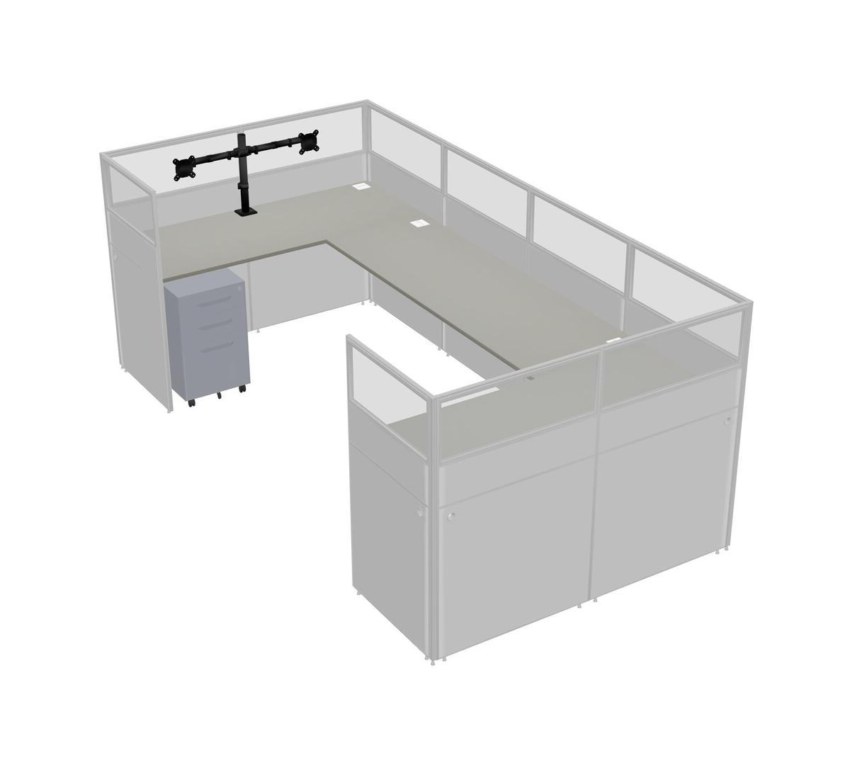 Grey Shadows U-shaped Panel System For 1 Person + Monitor Arm (double Arms) + Metal Mobile Drawers For 1 User(s)