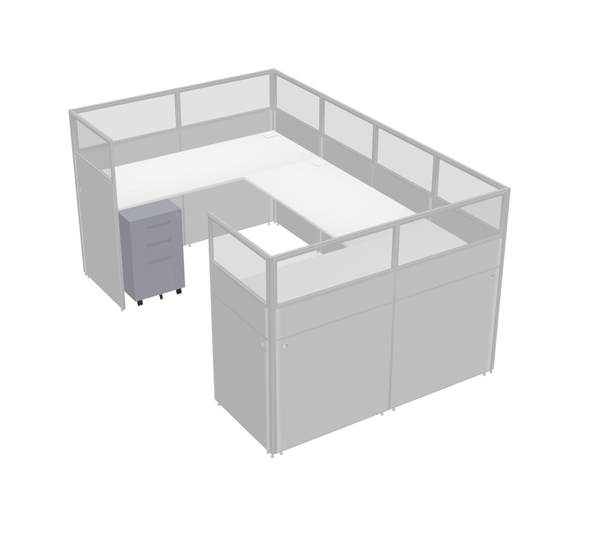White U-shaped Panel System For 1 Person + Metal Mobile Drawers For 1 User(s)