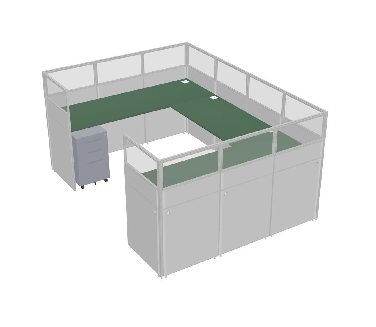 Green U-shaped Panel System For 1 Person + Metal Mobile Drawers For 1 User(s)