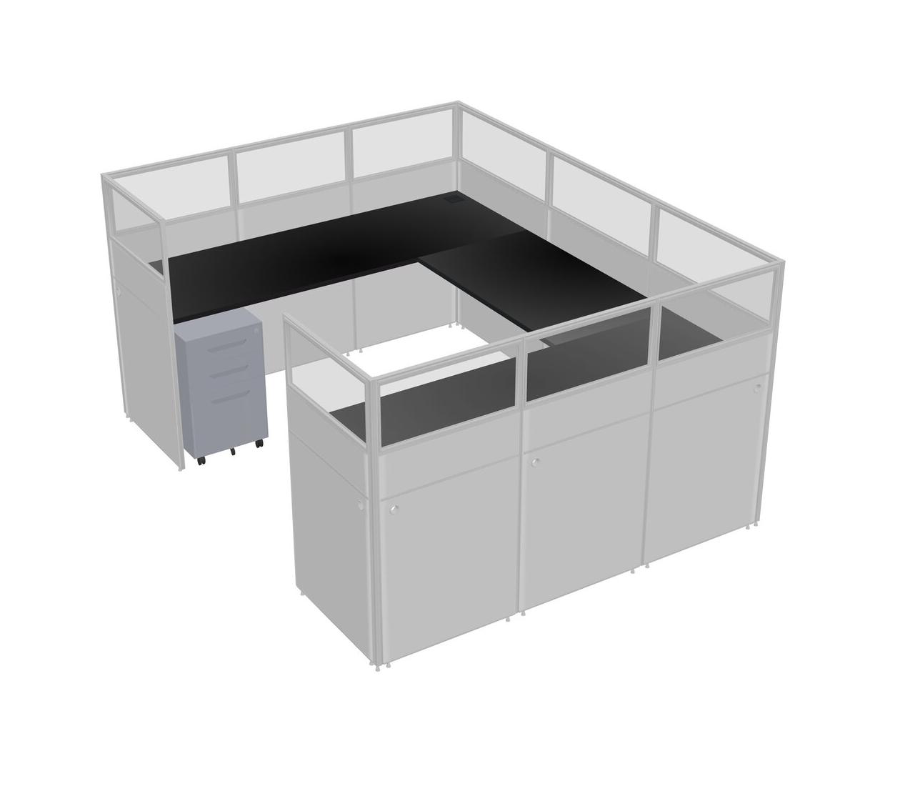 Black U-shaped Panel System For 1 Person + Metal Mobile Drawers For 1 User(s)