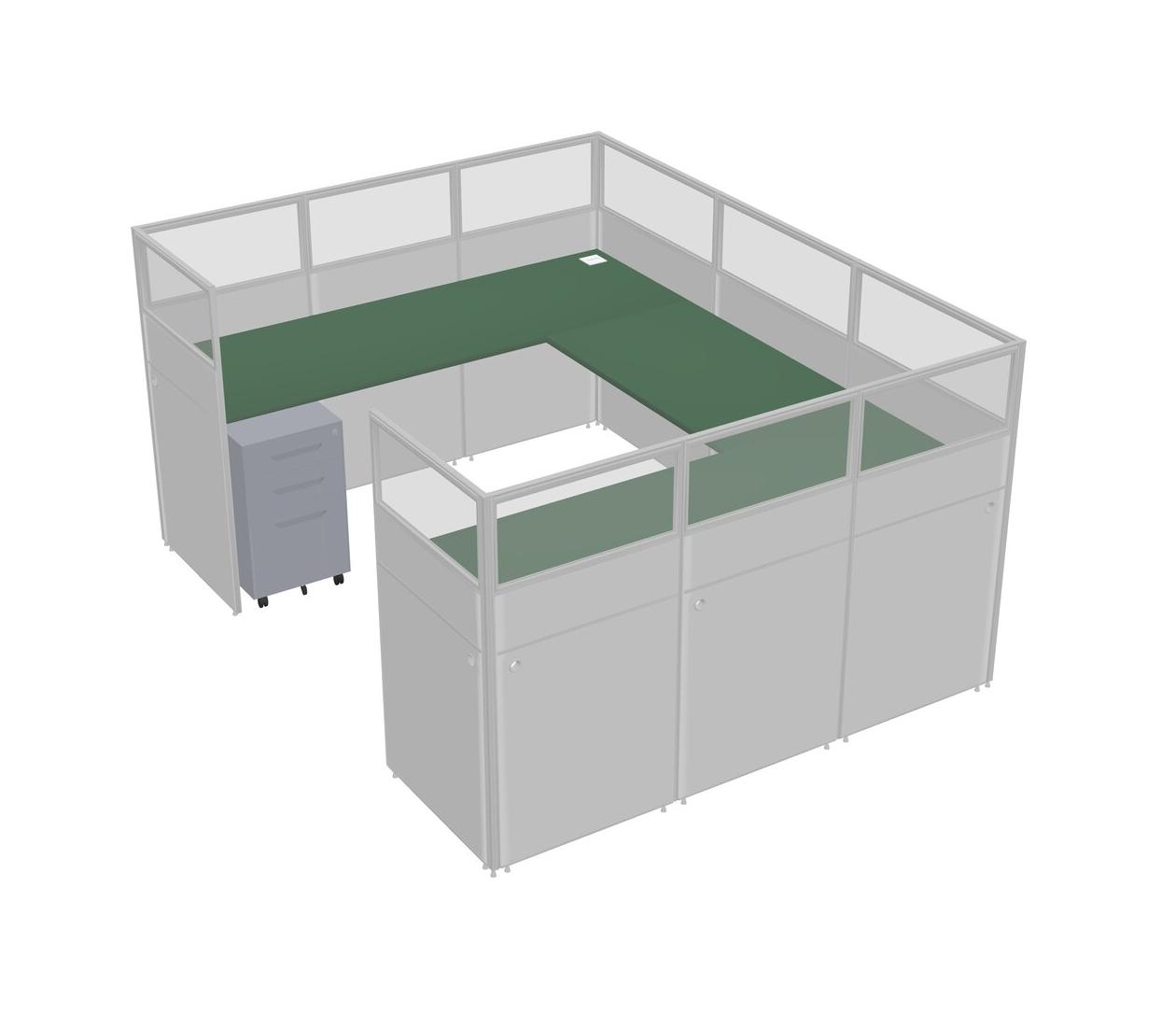 Green U-shaped Panel System For 1 Person + Metal Mobile Drawers For 1 User(s)