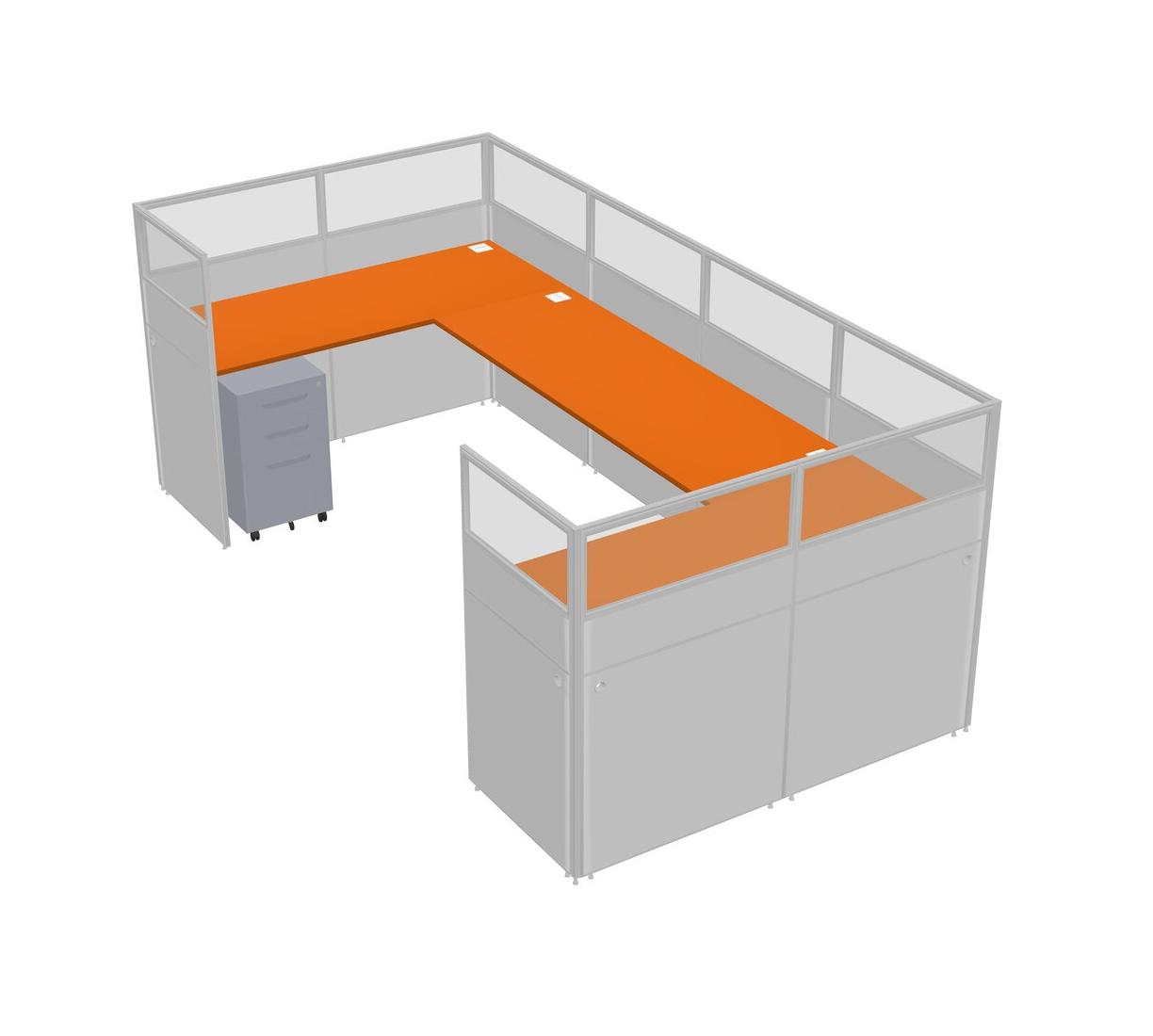 Orange U-shaped Panel System For 1 Person + Metal Mobile Drawers For 1 User(s)