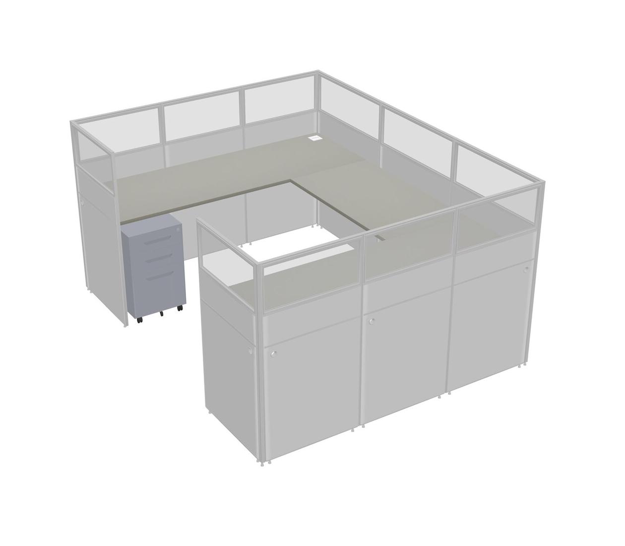 Grey Shadows U-shaped Panel System For 1 Person + Metal Mobile Drawers For 1 User(s)