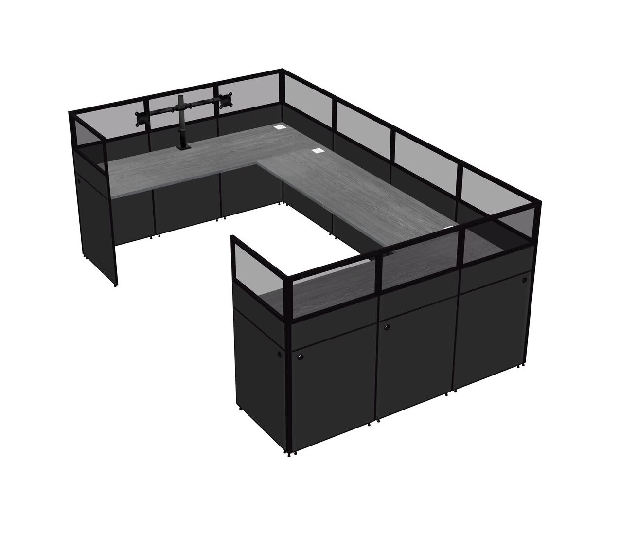 Grey U-shaped Panel System For 1 Person + Monitor Arm (double Arms) For 1 User(s)