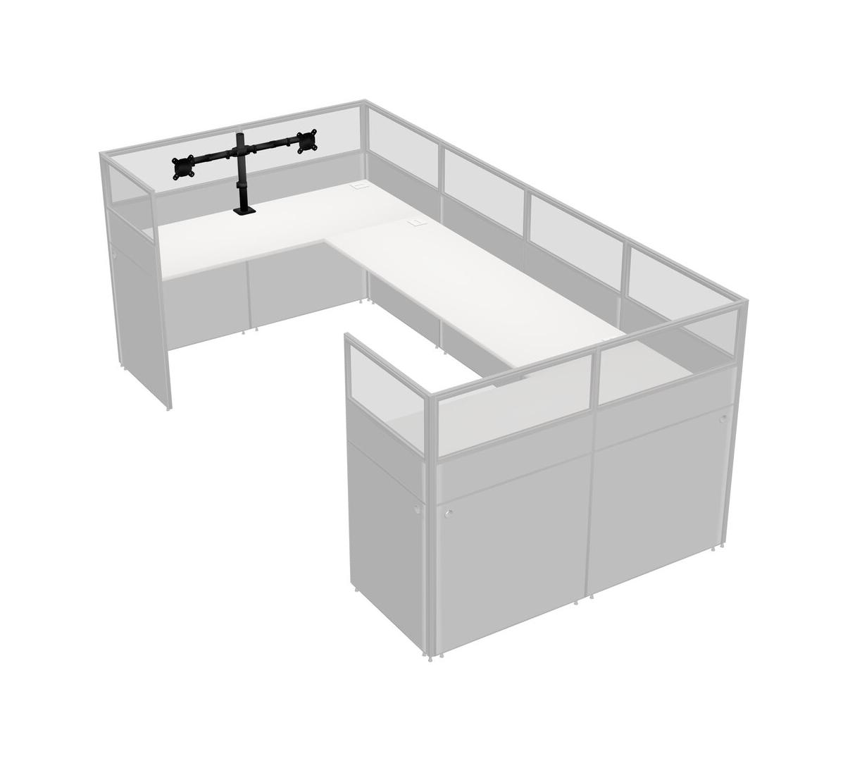 White U-shaped Panel System For 1 Person + Monitor Arm (double Arms) For 1 User(s)