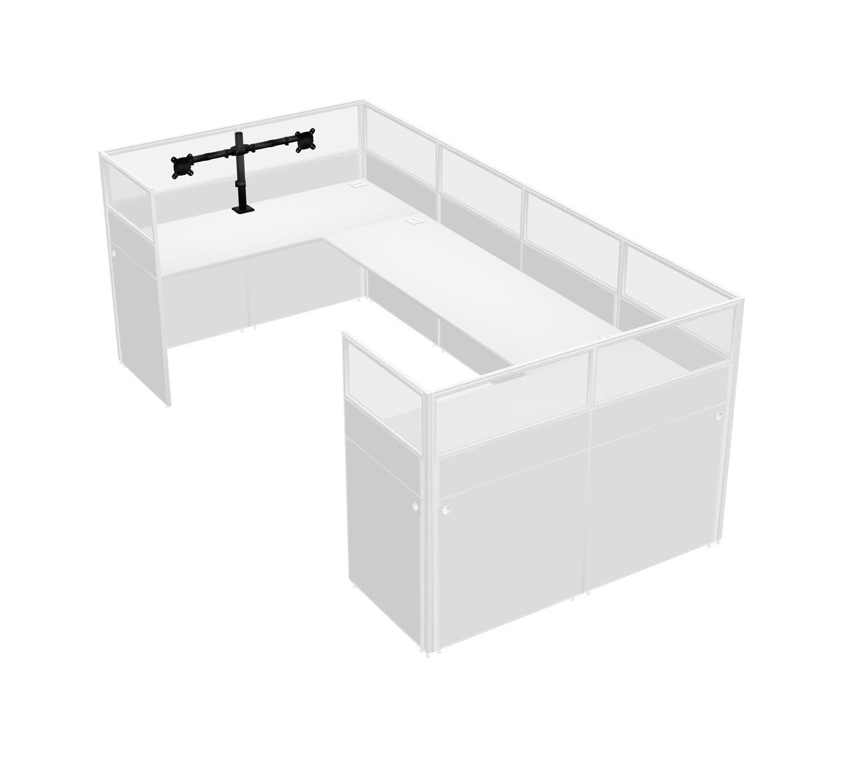 White U-shaped Panel System For 1 Person + Monitor Arm (double Arms) For 1 User(s)