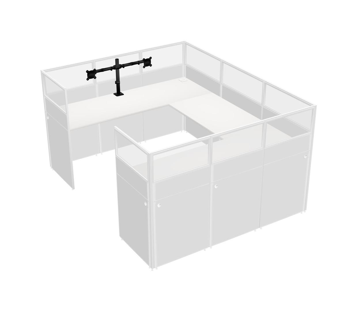 White U-shaped Panel System For 1 Person + Monitor Arm (double Arms) For 1 User(s)