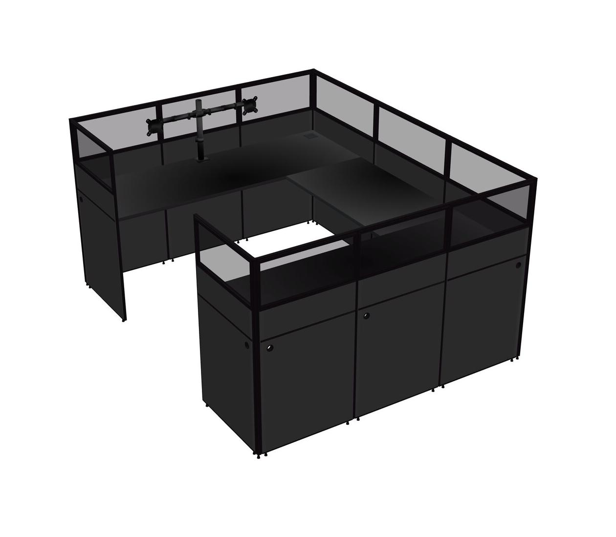 Black U-shaped Panel System For 1 Person + Monitor Arm (double Arms) For 1 User(s)