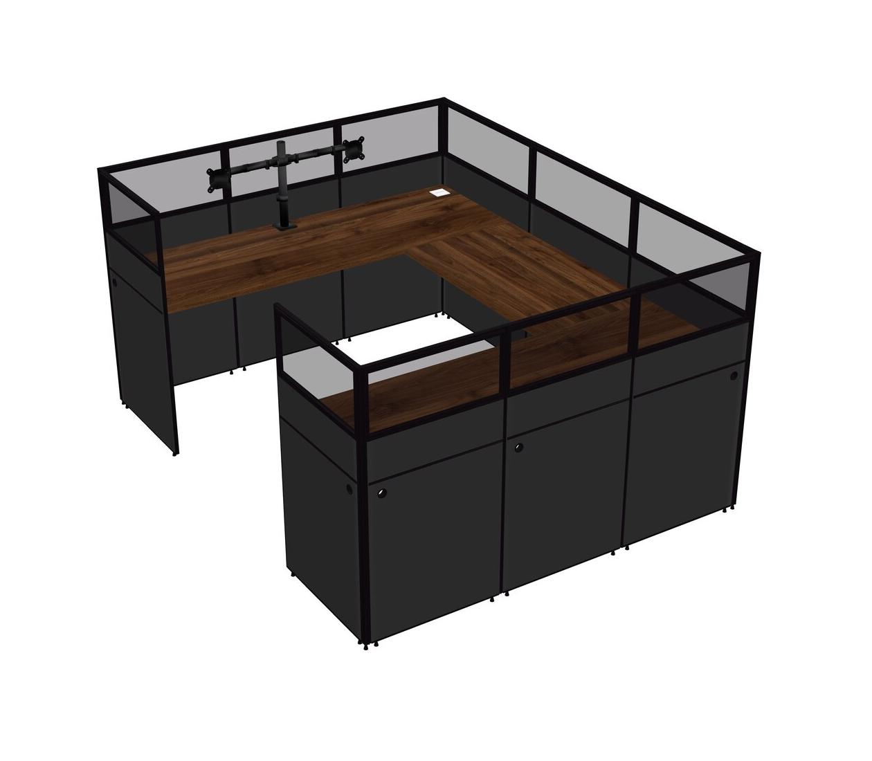 Columbia Walnut U-shaped Panel System For 1 Person + Monitor Arm (double Arms) For 1 User(s)