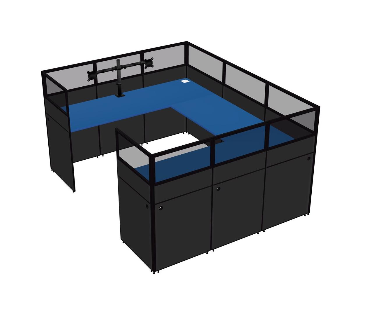 Prism Blue U-shaped Panel System For 1 Person + Monitor Arm (double Arms) For 1 User(s)