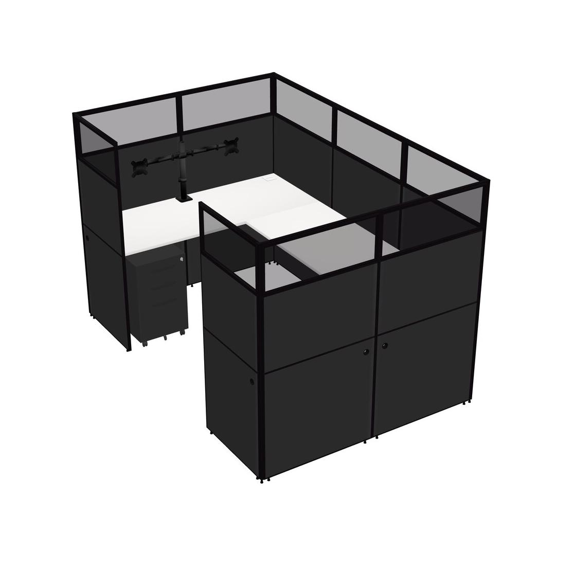 White U-shaped Panel System For 1 Person + Monitor Arm (double Arms) + Metal Mobile Drawers For 1 User(s)