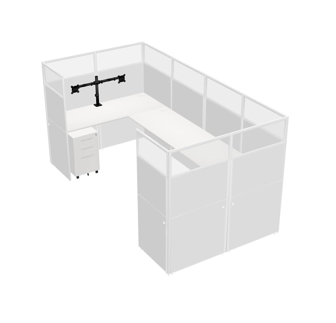 White U-shaped Panel System For 1 Person + Monitor Arm (double Arms) + Metal Mobile Drawers For 1 User(s)