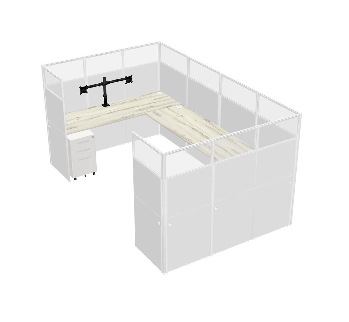 Heinne Holz U-shaped Panel System For 1 Person + Monitor Arm (double Arms) + Metal Mobile Drawers For 1 User(s)