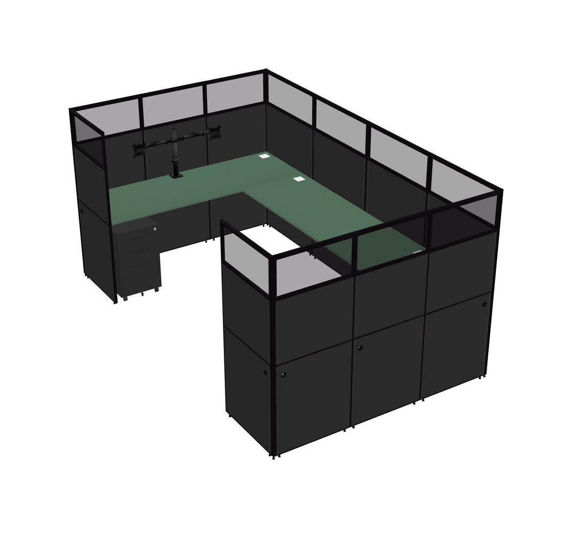 Green U-shaped Panel System For 1 Person + Monitor Arm (double Arms) + Metal Mobile Drawers For 1 User(s)
