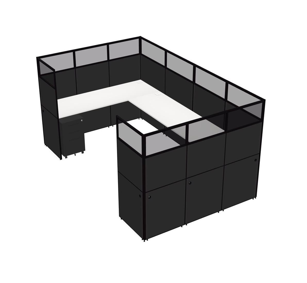 White U-shaped Panel System For 1 Person + Metal Mobile Drawers For 1 User(s)