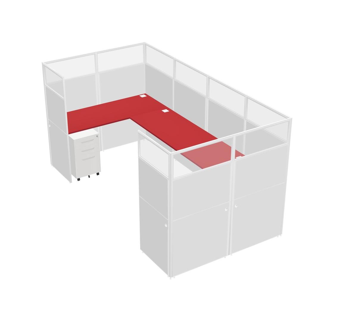 Prism Red U-shaped Panel System For 1 Person + Metal Mobile Drawers For 1 User(s)