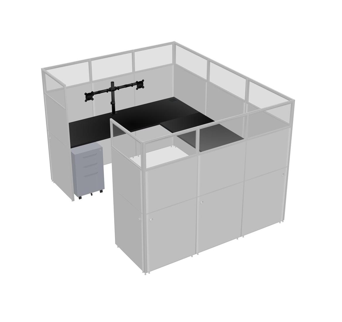 Black U-shaped Panel System For 1 Person + Monitor Arm (double Arms) + Metal Mobile Drawers For 1 User(s)