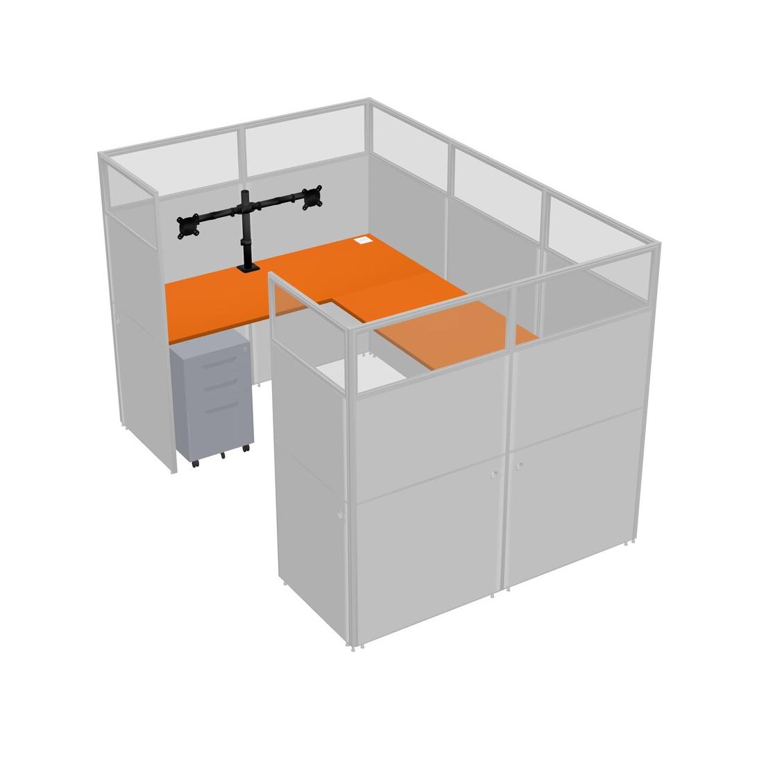 Orange U-shaped Panel System For 1 Person + Monitor Arm (double Arms) + Metal Mobile Drawers For 1 User(s)
