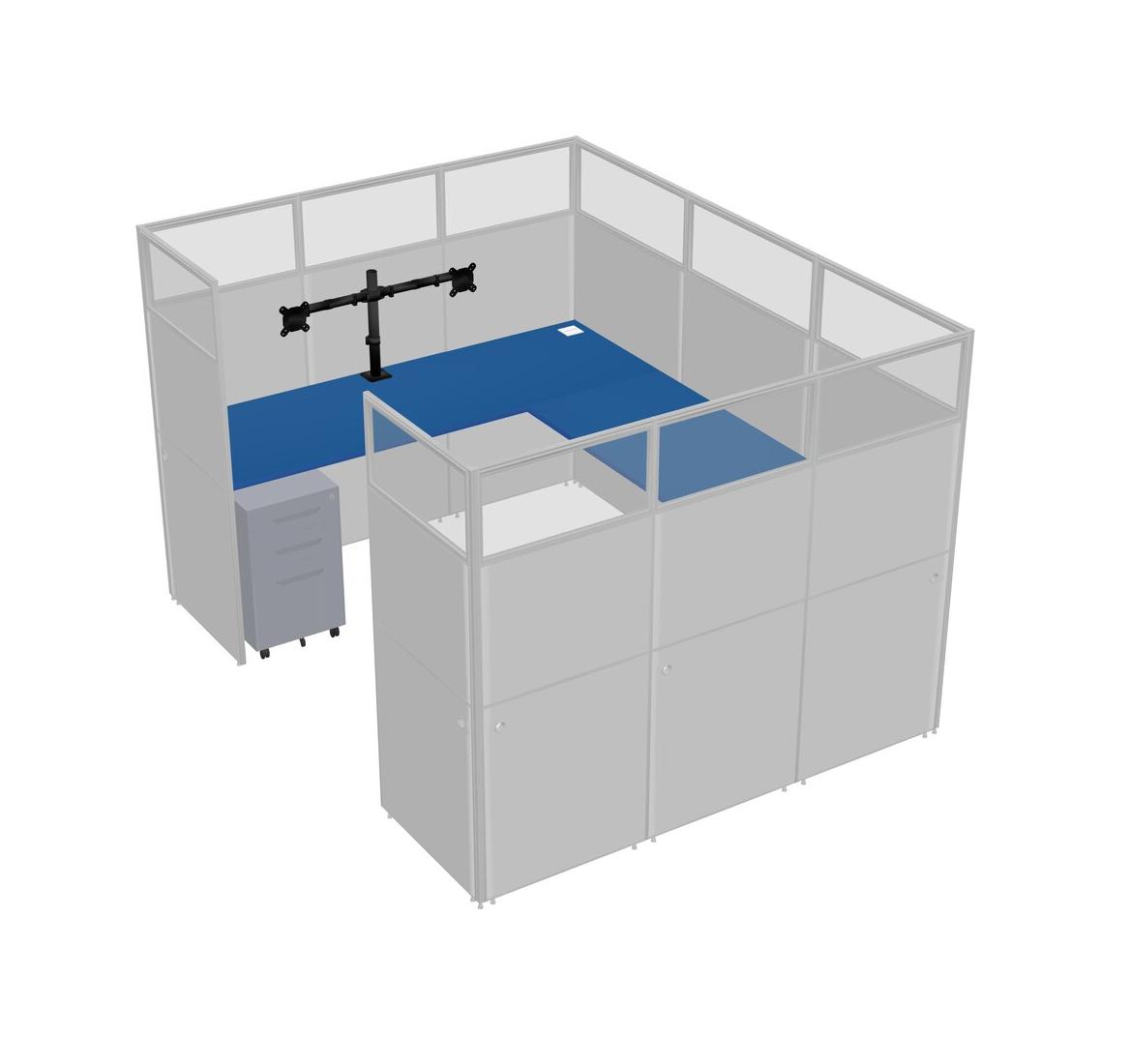 Prism Blue U-shaped Panel System For 1 Person + Monitor Arm (double Arms) + Metal Mobile Drawers For 1 User(s)