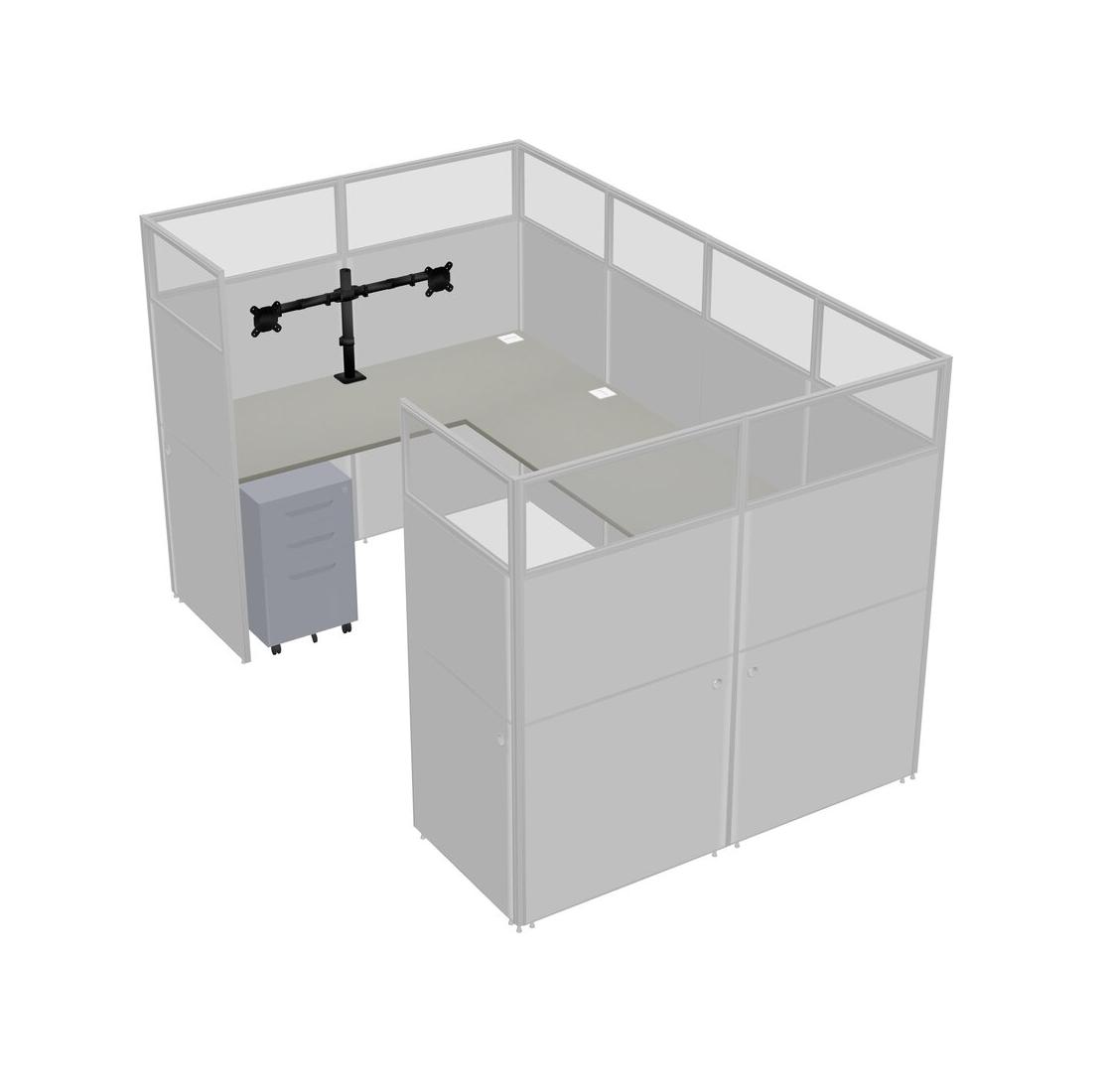 Grey Shadows U-shaped Panel System For 1 Person + Monitor Arm (double Arms) + Metal Mobile Drawers For 1 User(s)