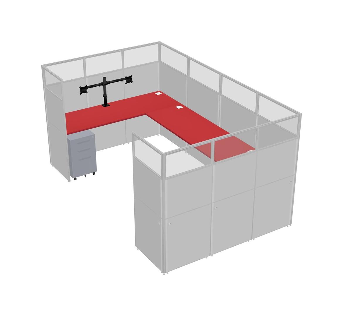 Prism Red U-shaped Panel System For 1 Person + Monitor Arm (double Arms) + Metal Mobile Drawers For 1 User(s)