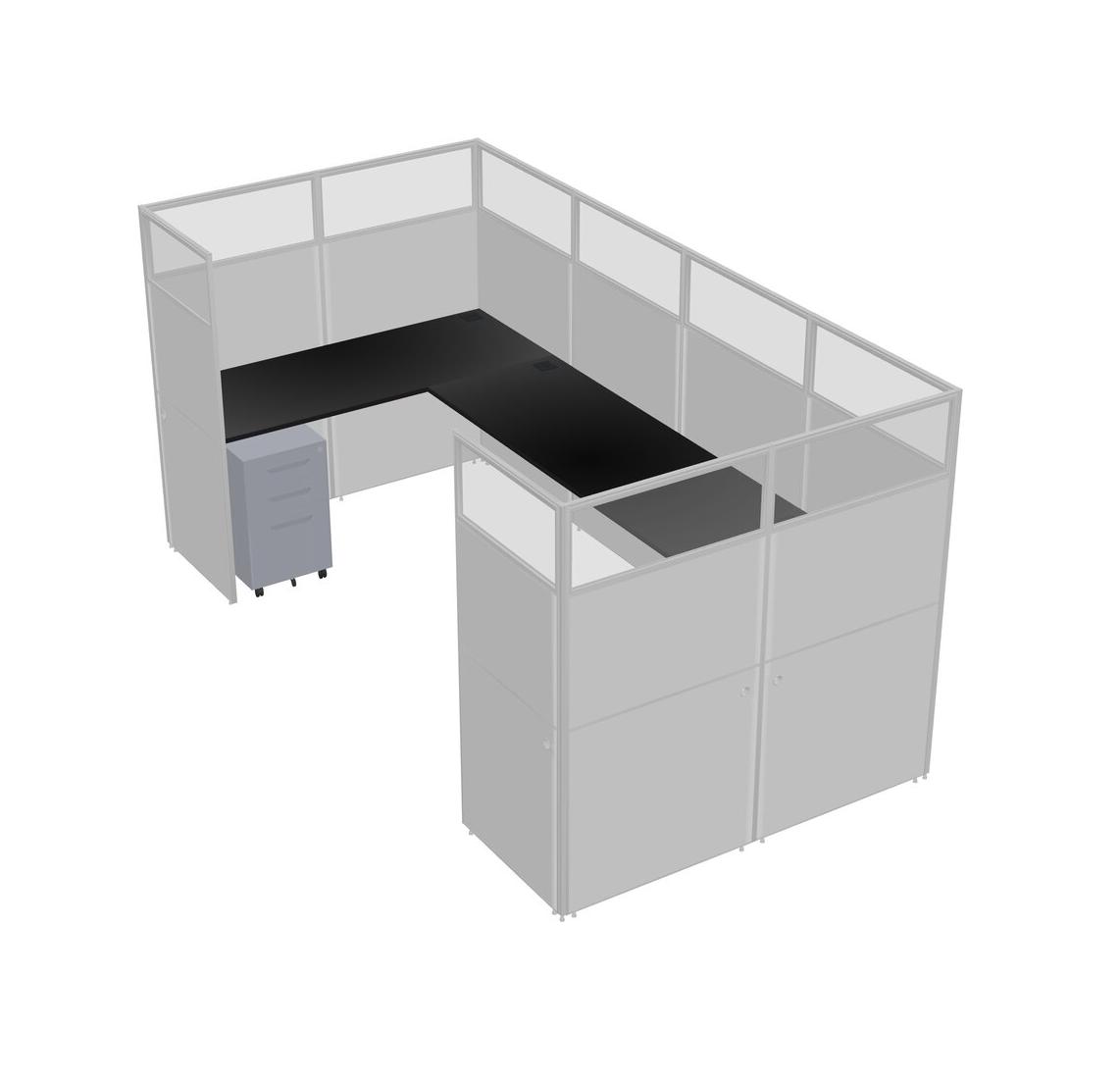Black U-shaped Panel System For 1 Person + Metal Mobile Drawers For 1 User(s)