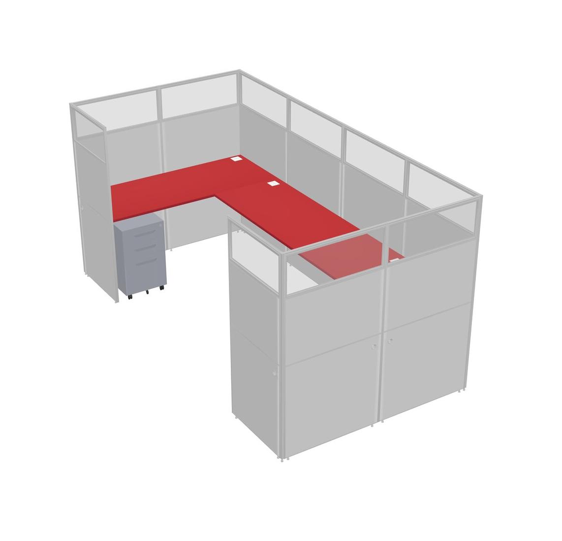 Prism Red U-shaped Panel System For 1 Person + Metal Mobile Drawers For 1 User(s)