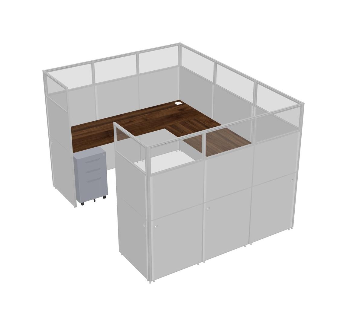 Columbia Walnut U-shaped Panel System For 1 Person + Metal Mobile Drawers For 1 User(s)