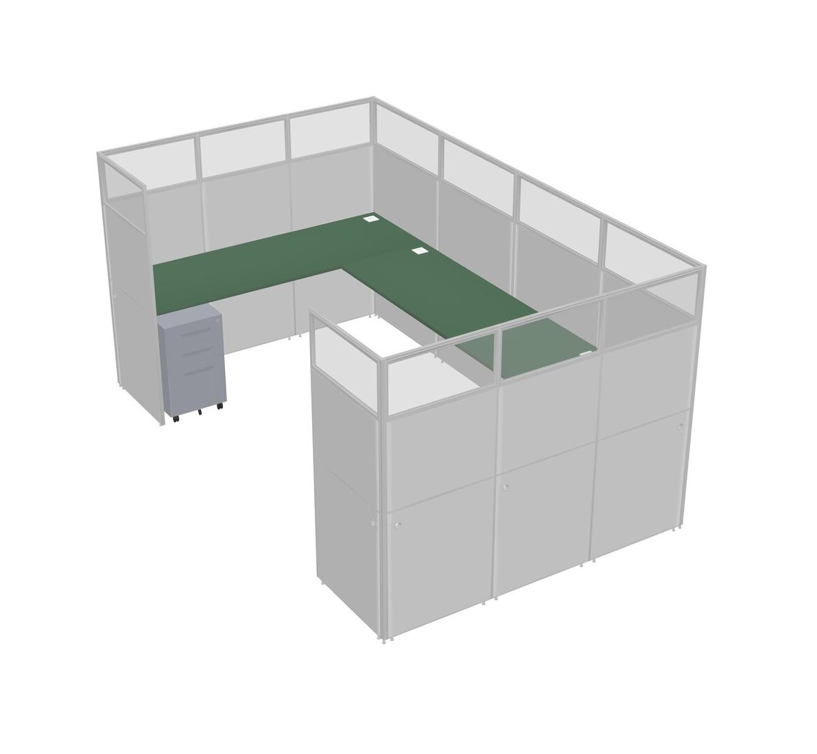 Green U-shaped Panel System For 1 Person + Metal Mobile Drawers For 1 User(s)