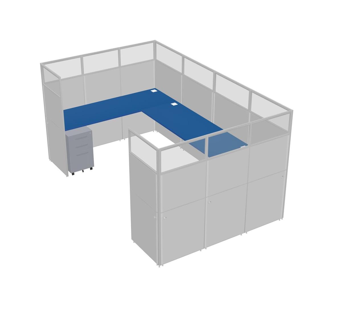Prism Blue U-shaped Panel System For 1 Person + Metal Mobile Drawers For 1 User(s)