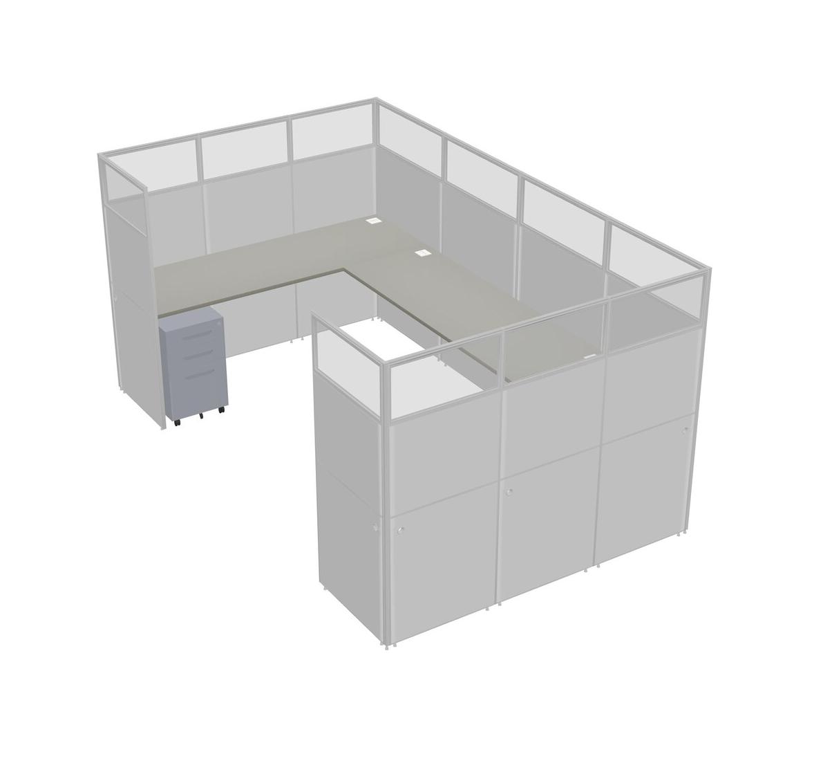 Grey Shadows U-shaped Panel System For 1 Person + Metal Mobile Drawers For 1 User(s)