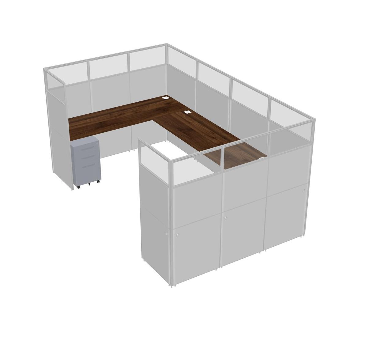 Columbia Walnut U-shaped Panel System For 1 Person + Metal Mobile Drawers For 1 User(s)