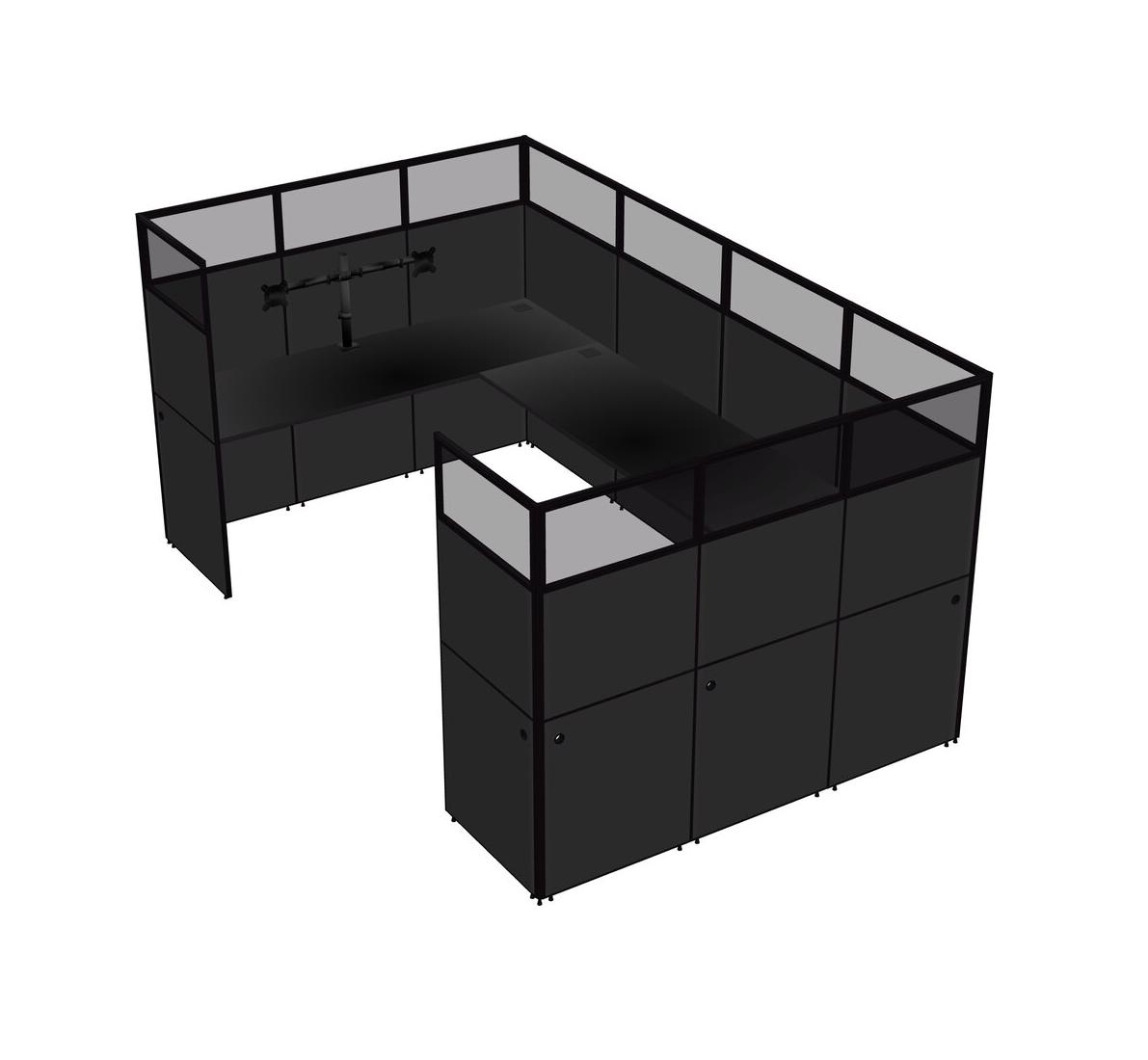 Black U-shaped Panel System For 1 Person + Monitor Arm (double Arms) For 1 User(s)