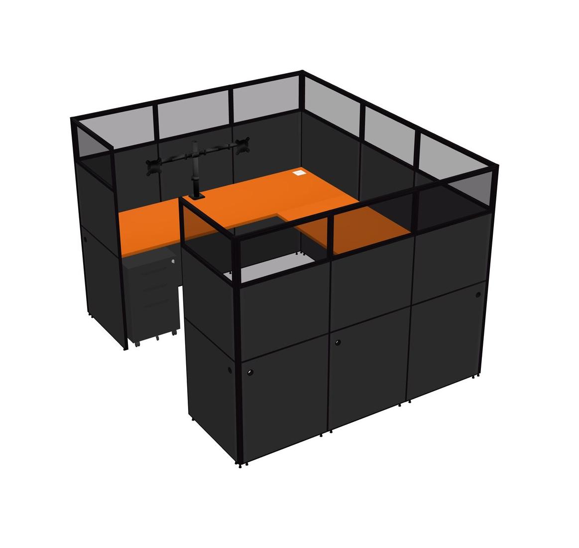 Orange U-shaped Panel System For 1 Person + Monitor Arm (double Arms) + Metal Mobile Drawers For 1 User(s)