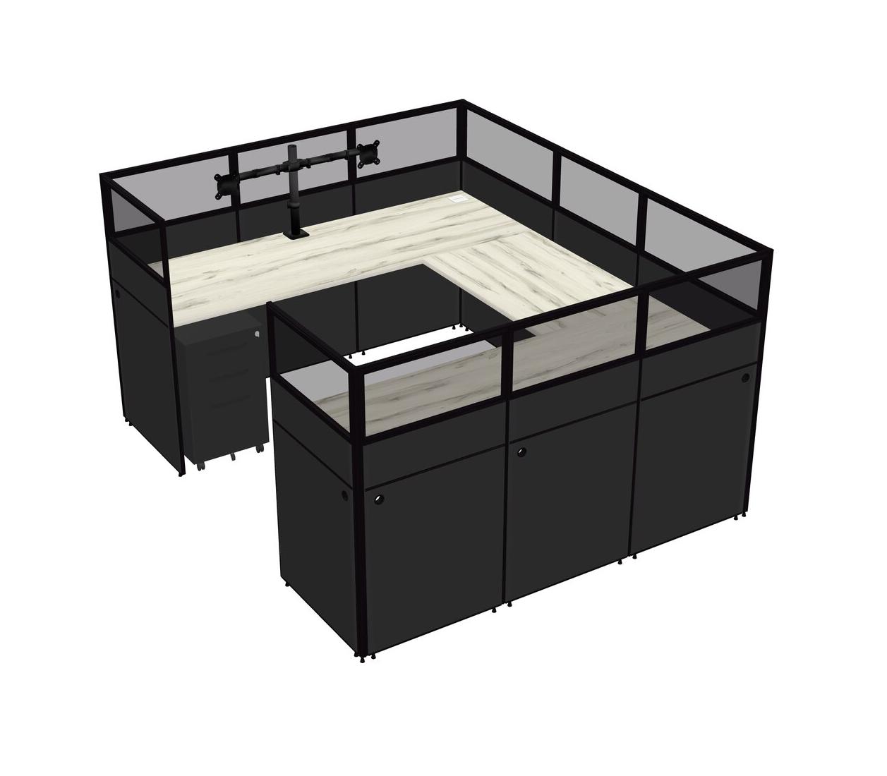 Heinne Holz U-shaped Panel System For 1 Person + Monitor Arm (double Arms) + Metal Mobile Drawers For 1 User(s)