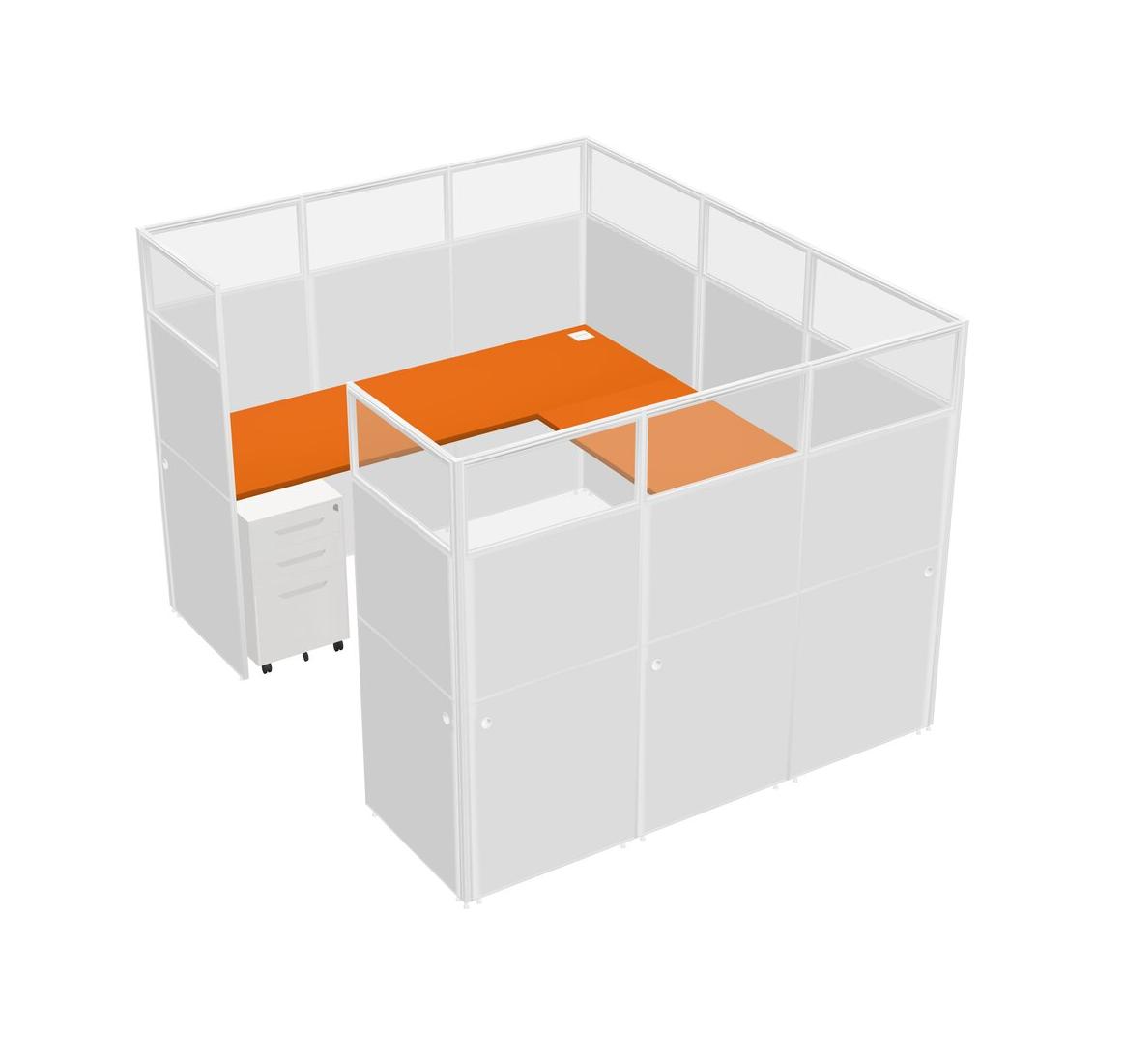 Orange U-shaped Panel System For 1 Person + Metal Mobile Drawers For 1 User(s)