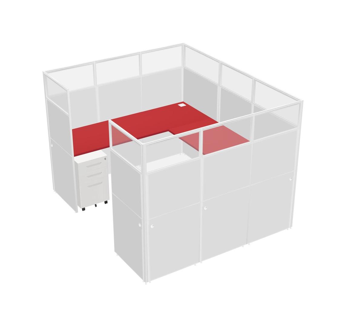 Prism Red U-shaped Panel System For 1 Person + Metal Mobile Drawers For 1 User(s)