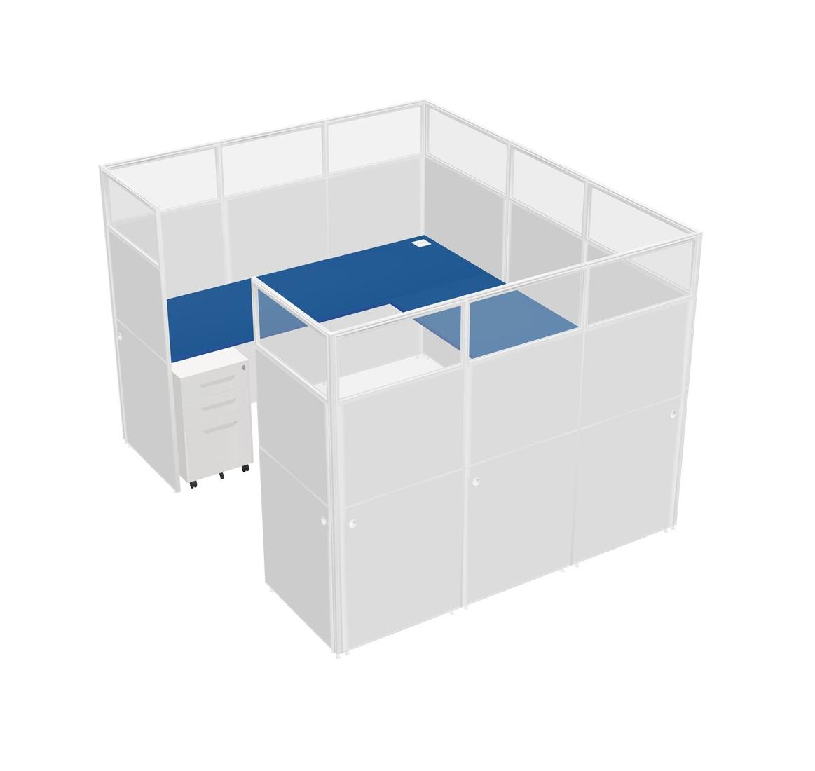 Prism Blue U-shaped Panel System For 1 Person + Metal Mobile Drawers For 1 User(s)