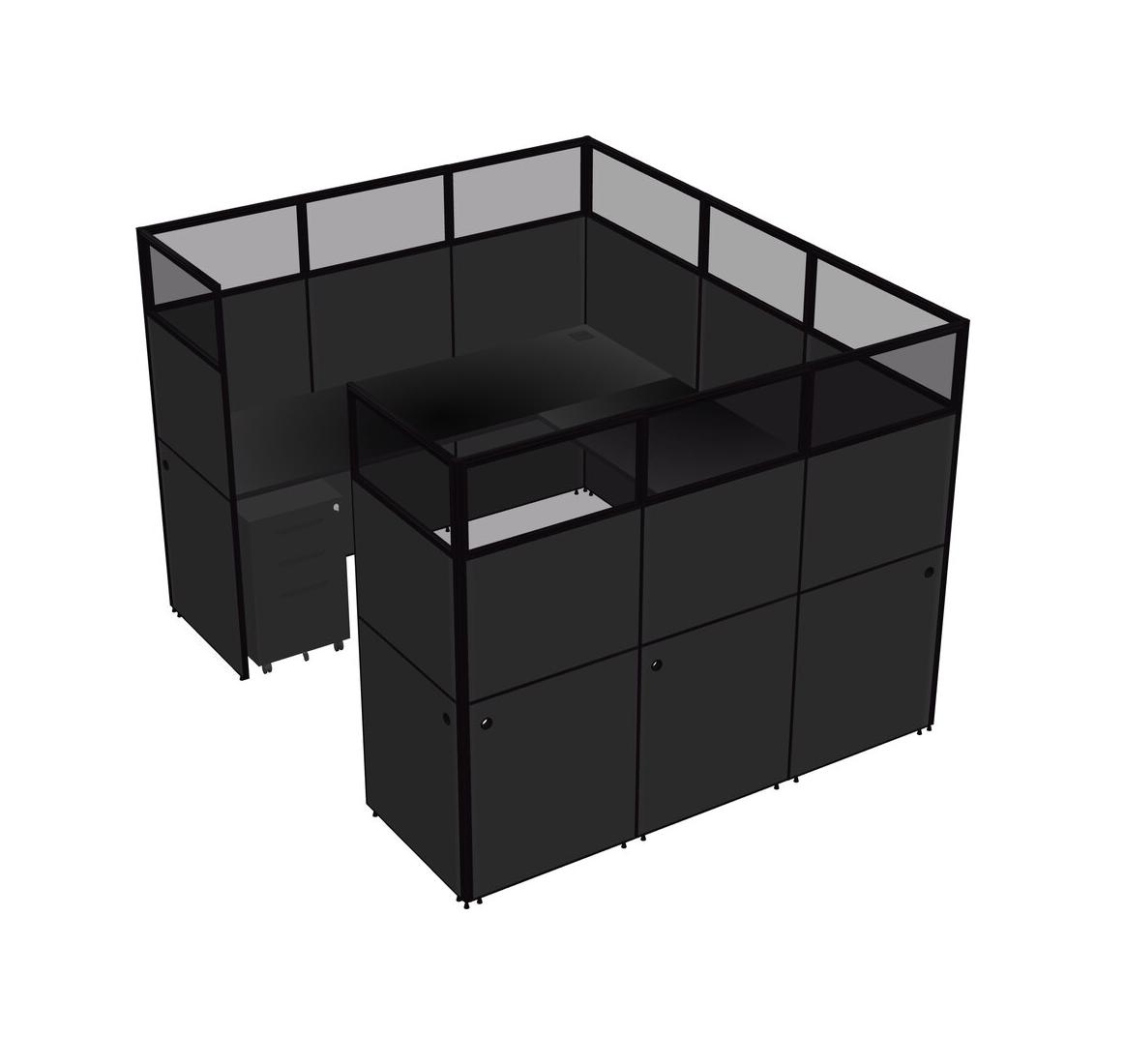 Black U-shaped Panel System For 1 Person + Metal Mobile Drawers For 1 User(s)